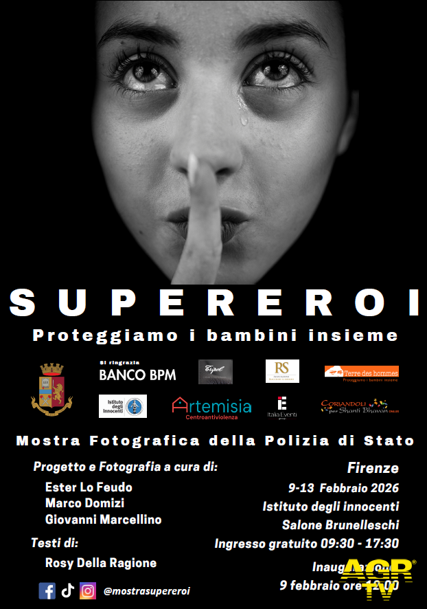 (AGR) Lunedì 9 febbraio, alle ore 10:45, sarà inaugurata presso il Complesso Museale di Santa Maria Novella, la mostra “La verità nelle tracce”, realizzata dal locale Gabinetto Regionale di Polizia Scientifica, in collaborazione con il Comune di Firenze, grazie al sostegno di Intesa Sanpaolo, Menarini Group e TCA Precious Metals Refining, e, a seguire, dalle ore 12:00, presso l’Istituto degli Innocenti, sarà inaugurata la mostra fotografica “Supereroi”, realizzata dal Centro Operativo per la Sicurezza Cibernetica per la Toscana grazie alla collaborazione dell’Istituto degli Innocenti, che ospiterà l'edizione fiorentina della mostra, e al sostegno di Banco BPM, Tripel Due, Centro