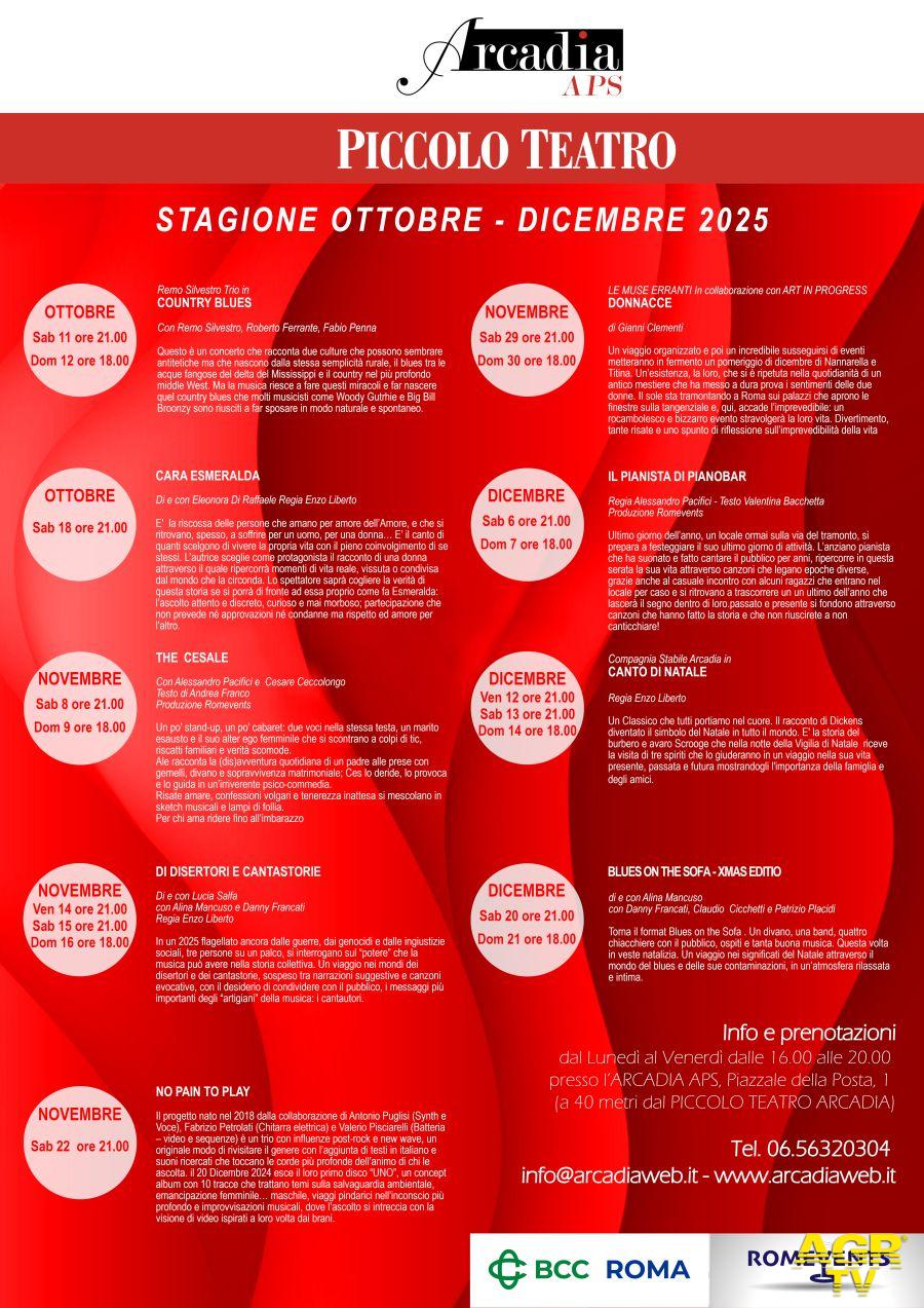 STAGIONE TEATRALE “PICCOLO TEATRO ARCADIA” ottobre – dicembre 2025