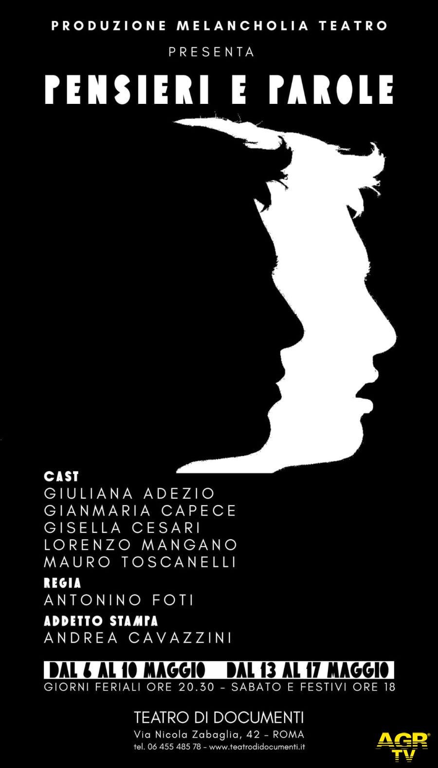 "Pensieri e parole" testo e regia di Antonio Foti, al teatro dei Documenti dal 6 al 10 maggio, dal 13 al 17 maggio