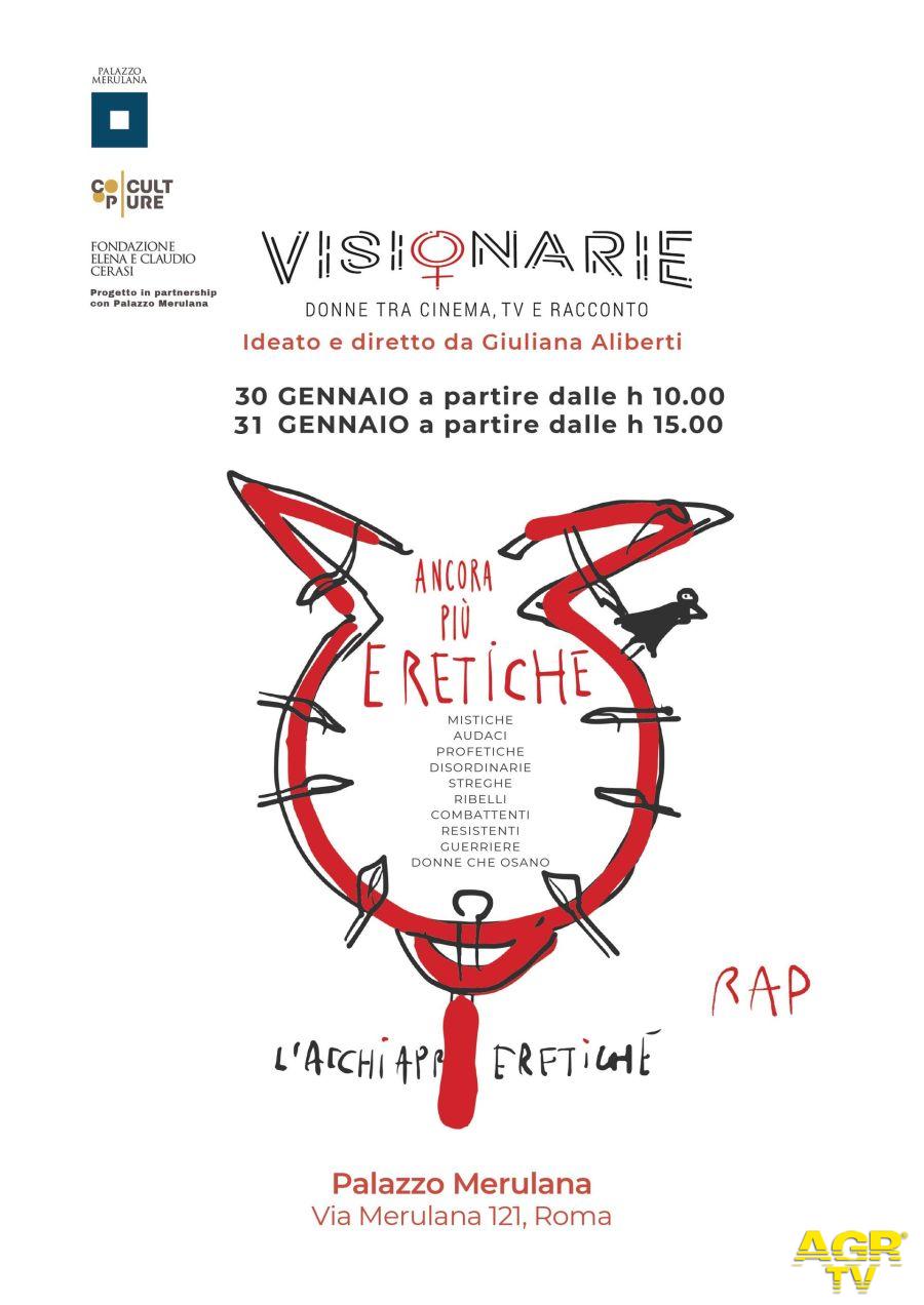 Dal 30 al 31 gennaio a palazzo Merulana in progranna con "Visionarie" due giornate di incontri, testimonianze, scambi e visioni che celebrano la presenza femminile nei linguaggi creativi, tra cinema, televisione, scrittura e pensiero critico.